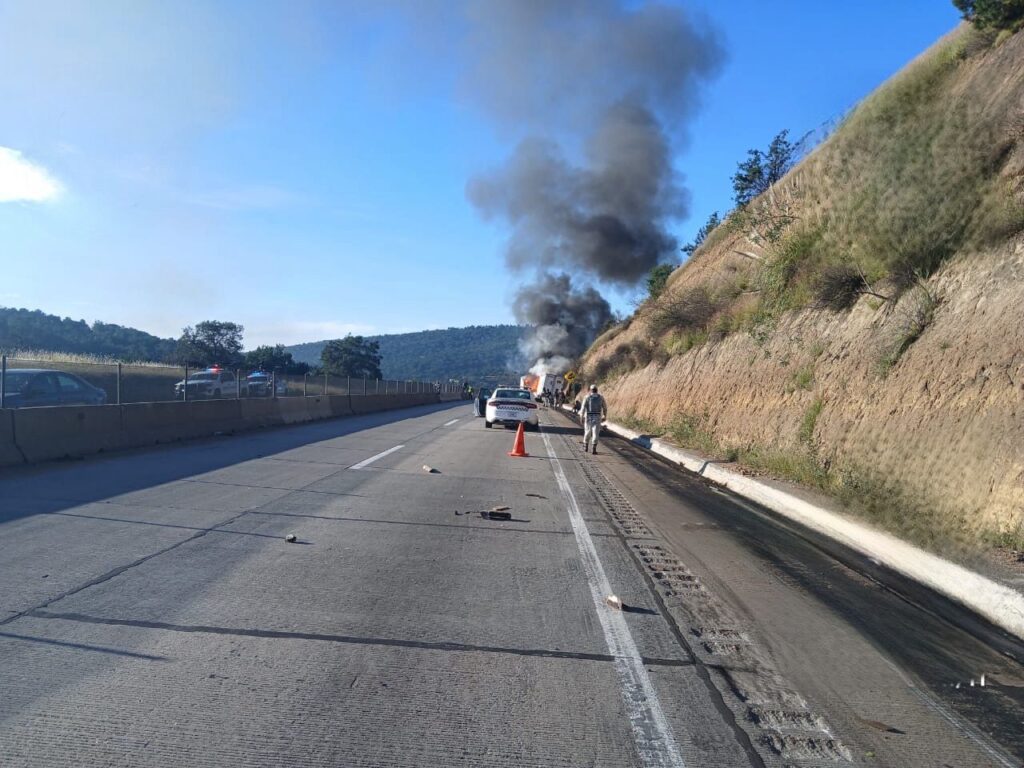Según la información inicial, un tráiler se impactó en la caja de otra unidad de carga pesada. El impacto fue tan fuerte que uno de los vehículos articulados comenzó a incendiarse. Presuntamente, el conductor de la unidad impactada logró desenganchar el remolque para evitar que el fuego se propagara.