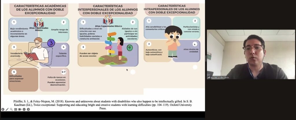 A nivel académico es importante que las instituciones educativas tengan empatía, validen las diferencias a través de la colaboración activa, académica y extracurricular, tomen en cuenta las dificultades neuronormativas y sean flexibles con los estudiantes que presentan alguna problemática del neurodesarrollo, aseveró el Doctor Raúl Alejandro Miranda Ojeda, al dictar la conferencia virtual “Neurodiversidad dentro del ambiente universitario”, por invitación de la Secretaría de Investigación Científica y Posgrado de la Universidad Autónoma de Tlaxcala (UATx).