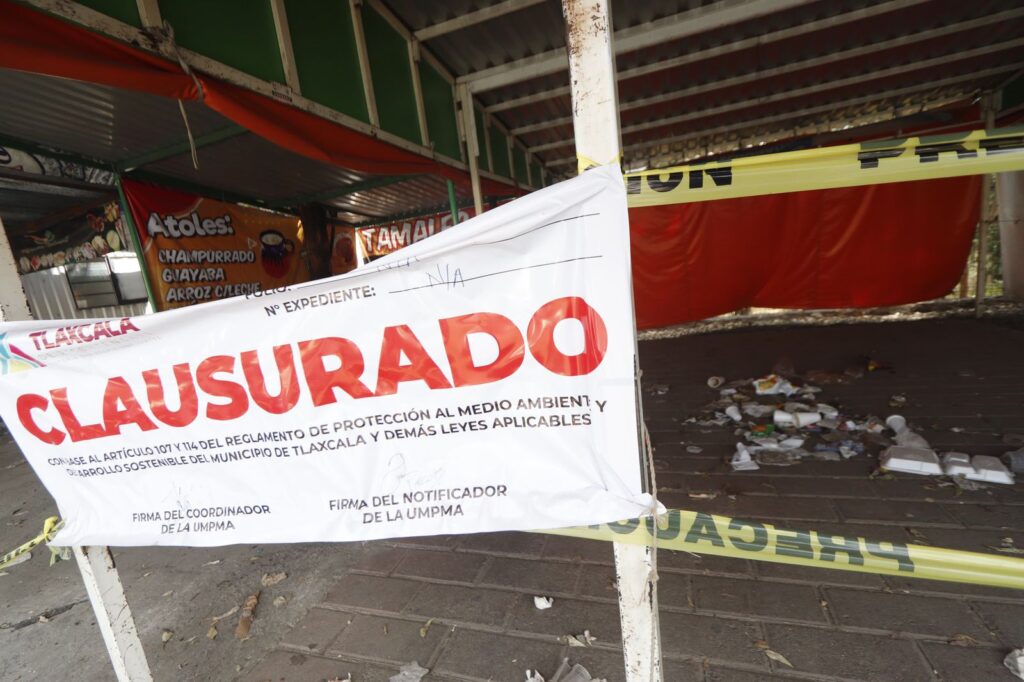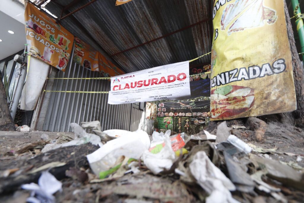 Comercios que habían instalado irregularmente contravinieron la ley al invadir parte de la zona natural de la Ocotera y el derecho de vía, de la carretera Tlaxcala-Nativitas a la altura del Hospital de Zona del IMSS, en La Loma Xicoténcatl, fueron clausurados por el ayuntamiento de Tlaxcala capital, con la finalidad de poner orden en esa zona pública. Imagen: Cristihan Martínez / Nierika Images